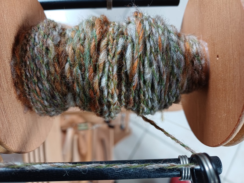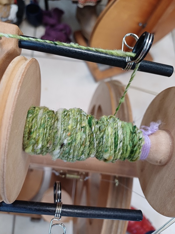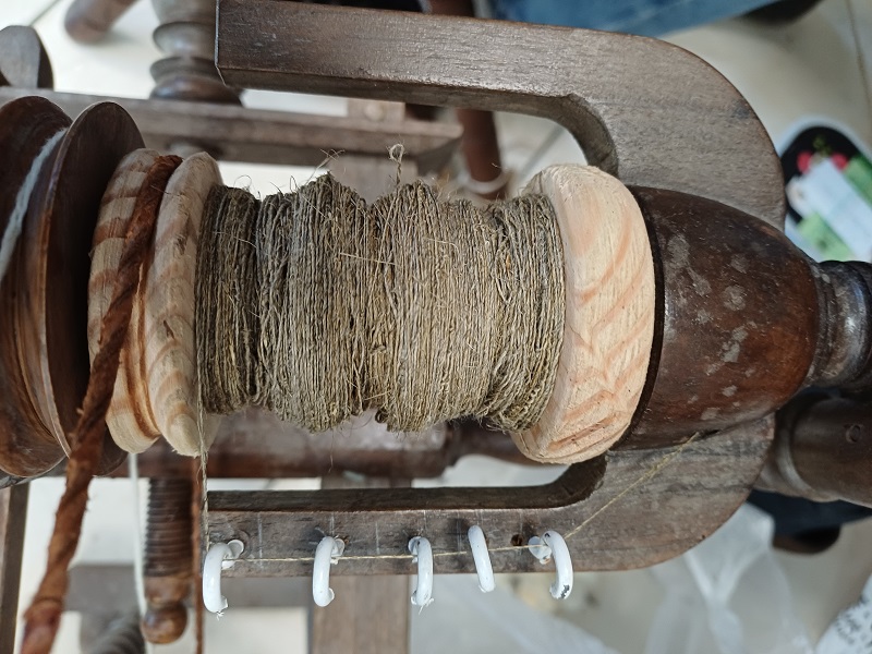 Activités en cours dont la dernière image : filage de lin brut.